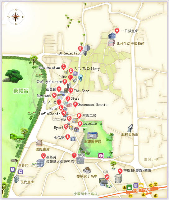 戰爭紀念館 -> 梨泰院 -> 新沙-> 狎鷗亭 -> 安國年糕鍋 -> 三清洞 -> 【梨大】 -> 新村八色肉 -> 酒店
